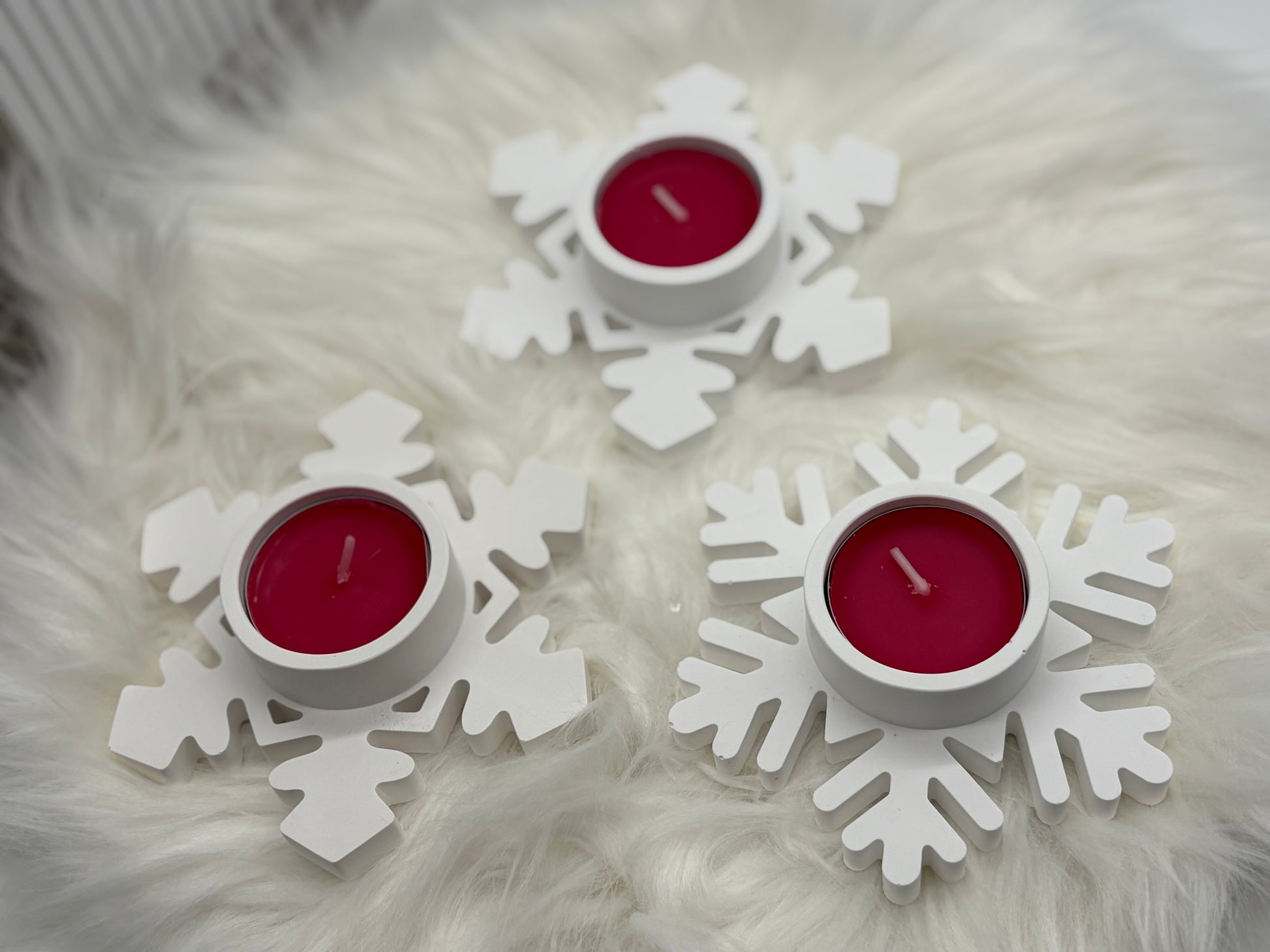 Verleihe deinem Zuhause winterliche Gemütlichkeit mit diesen drei handgefertigten Teelichthalter Schneeflocke aus hochwertigem Gießpulver. Jeder Kerzenhalter wird in liebevoller Handarbeit gefertigt – so entstehen echte Unikate, die perfekt in die Winter- und Weihnachtszeit passen.