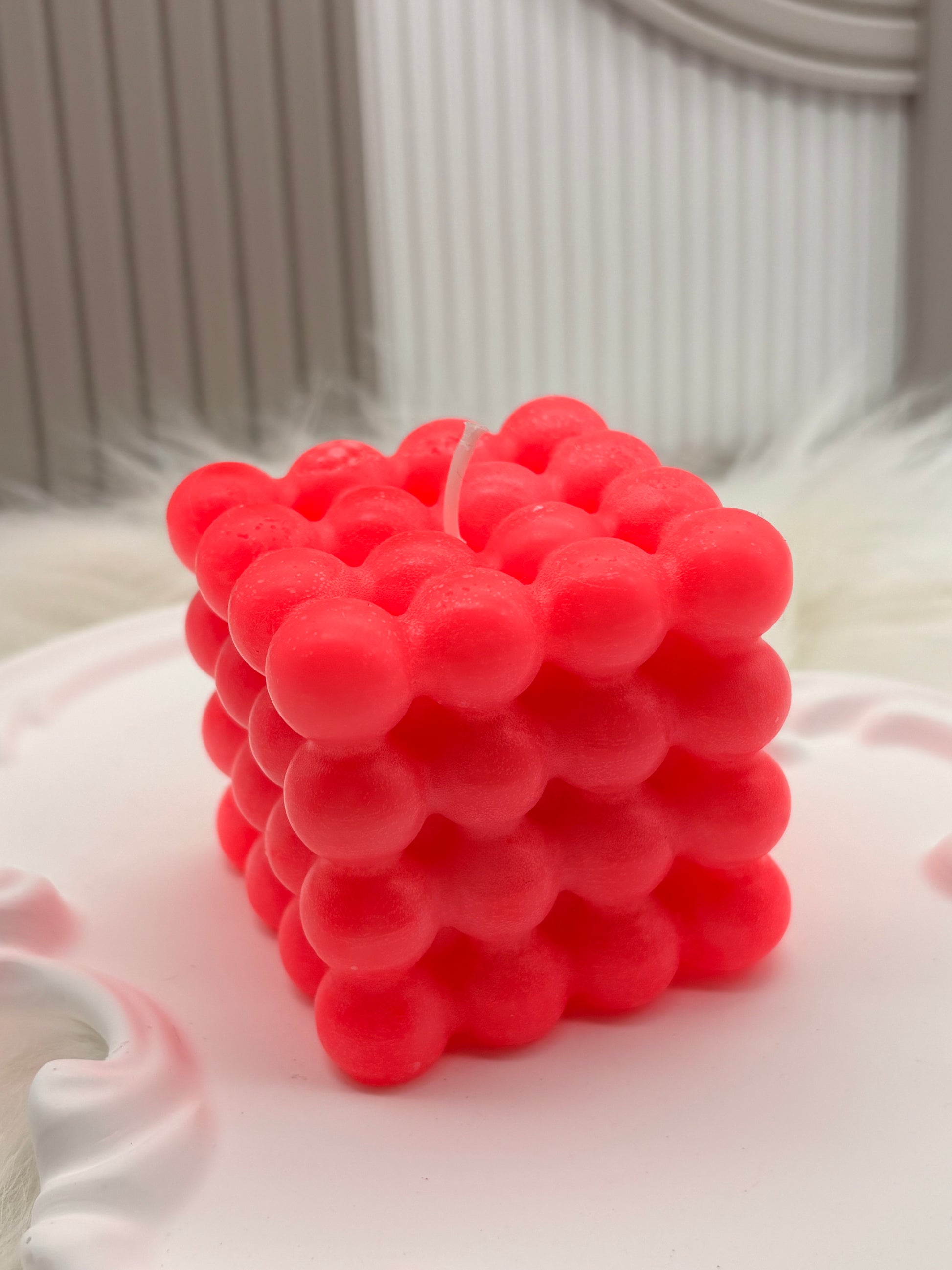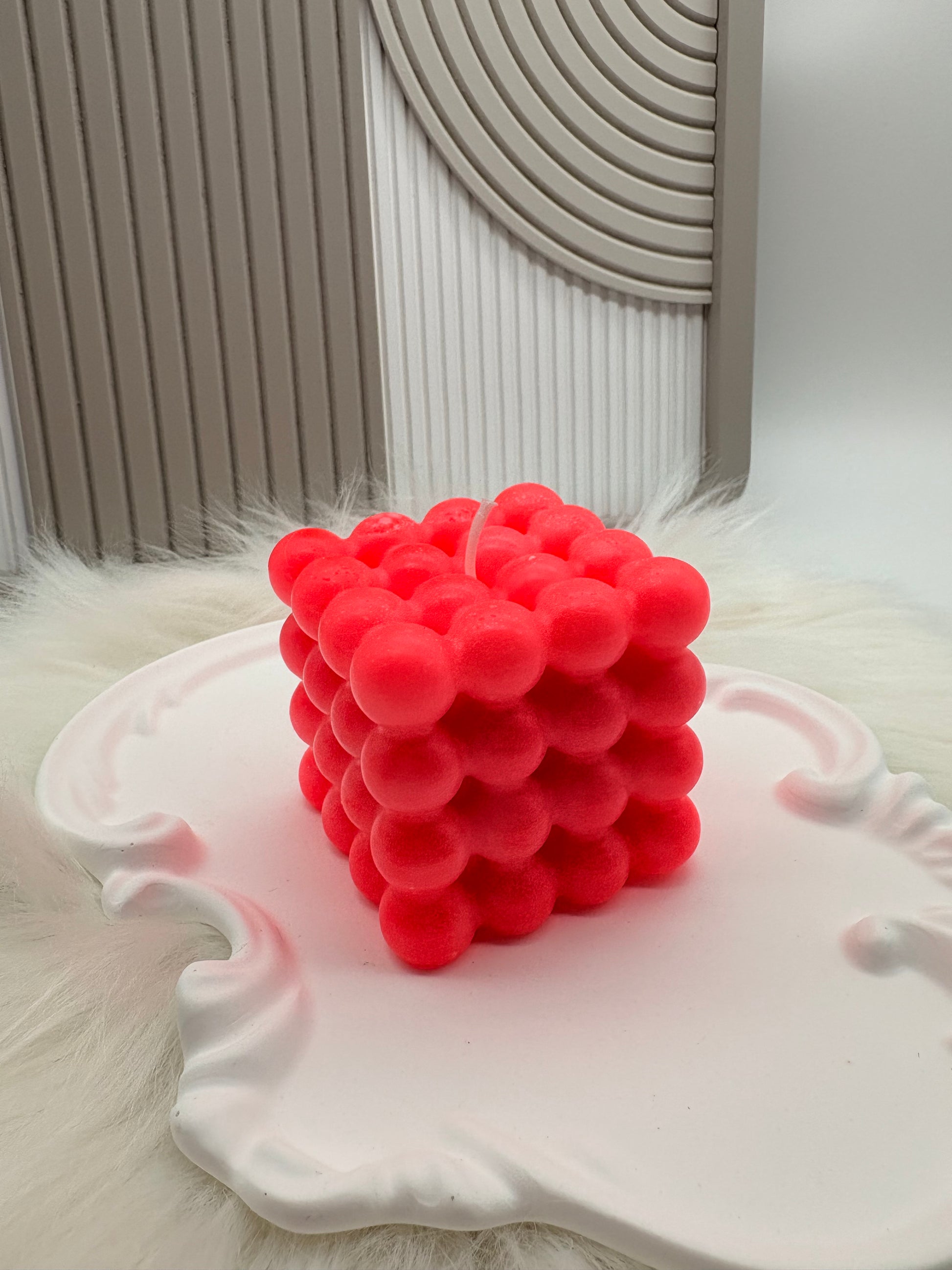 Handgemachte Bubblekerze aus Sojawachs in flureszierender Farbe.