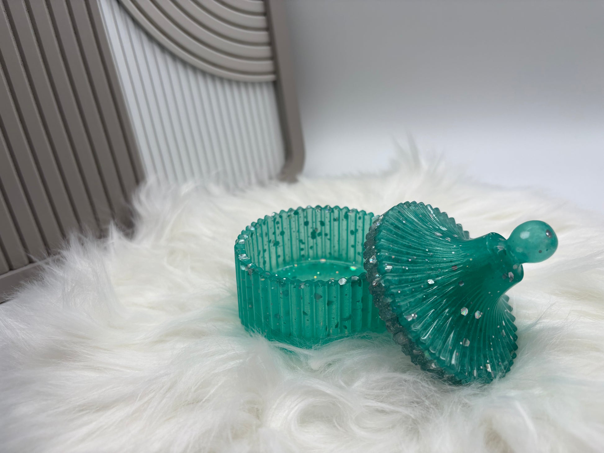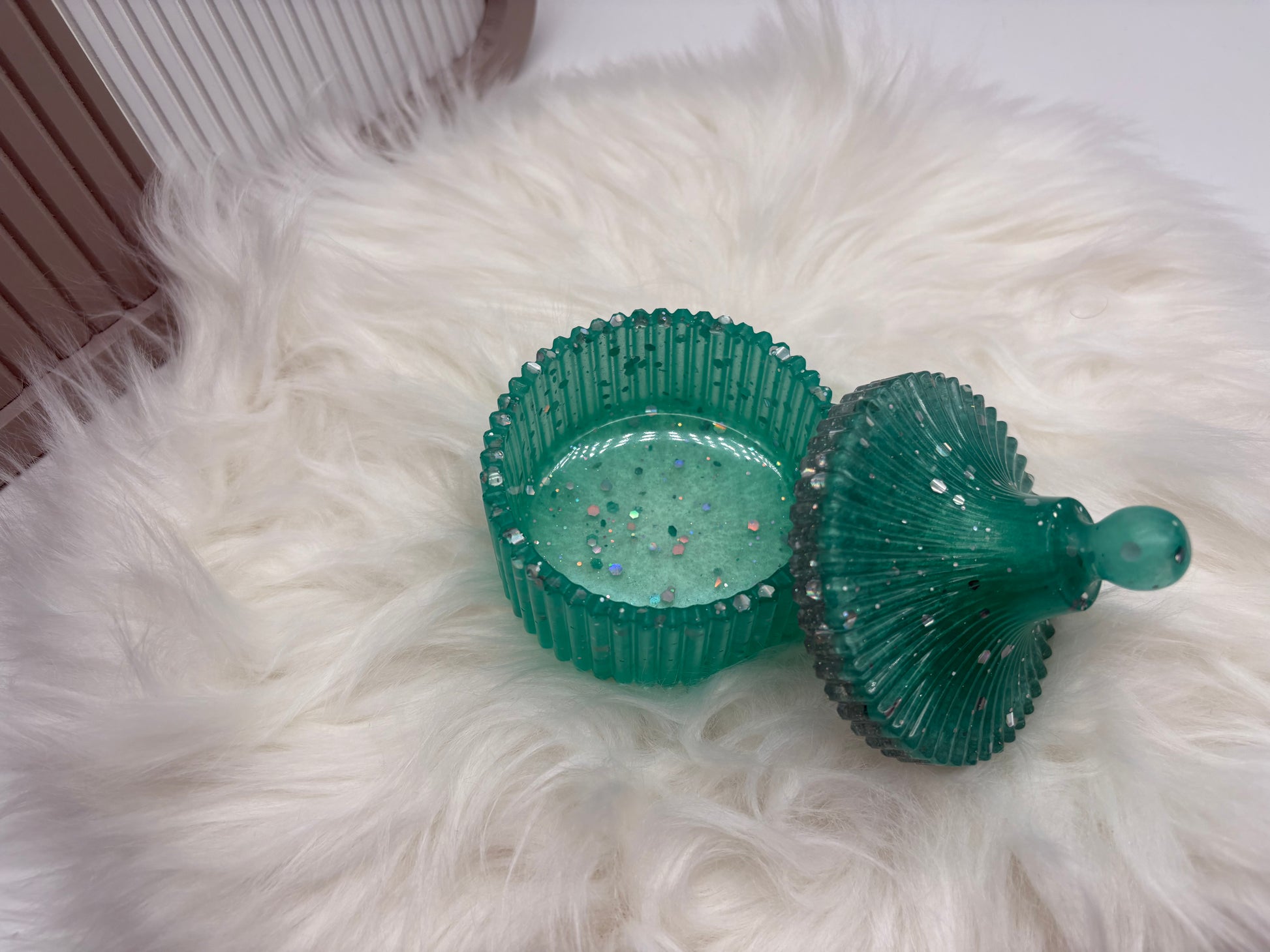 Dose mit Deckel aus Resin – Handgemachte Schmuckdose in Smaragdgrün mit Glitzer