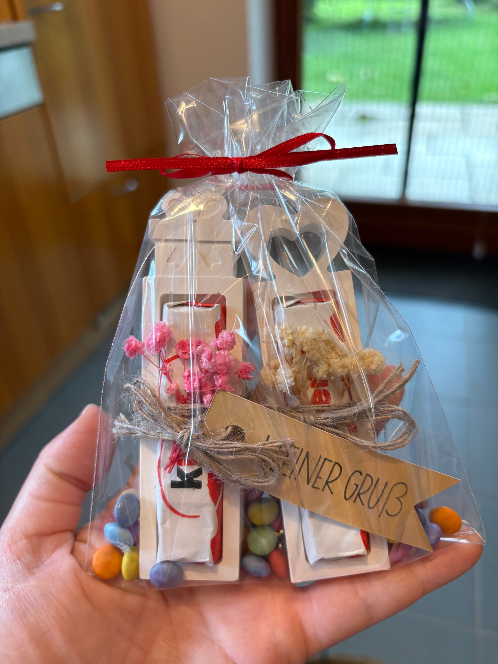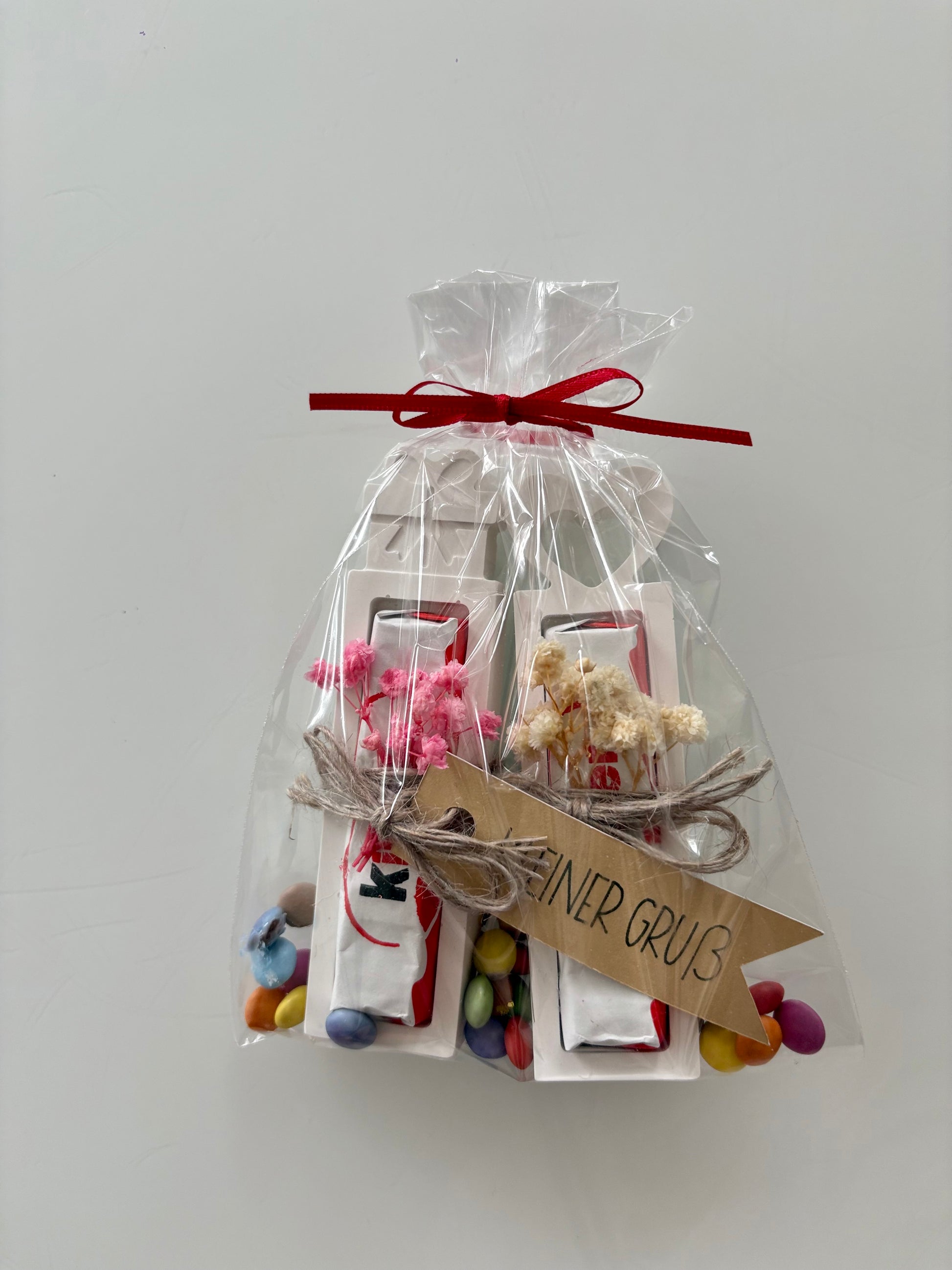 Mit dieser handgegossenen Form aus Gießpulver hast du immer das perfekte Mitbringsel parat. Ob mit einem Kinderriegel, Merci oder einer anderen süßen Kleinigkeit befüllt – hübsch verpackt und bereit zum Verschenken.