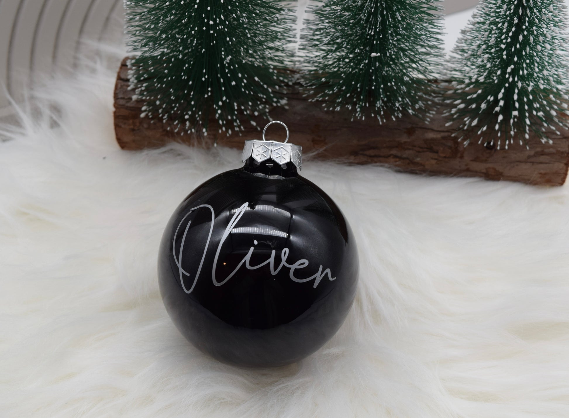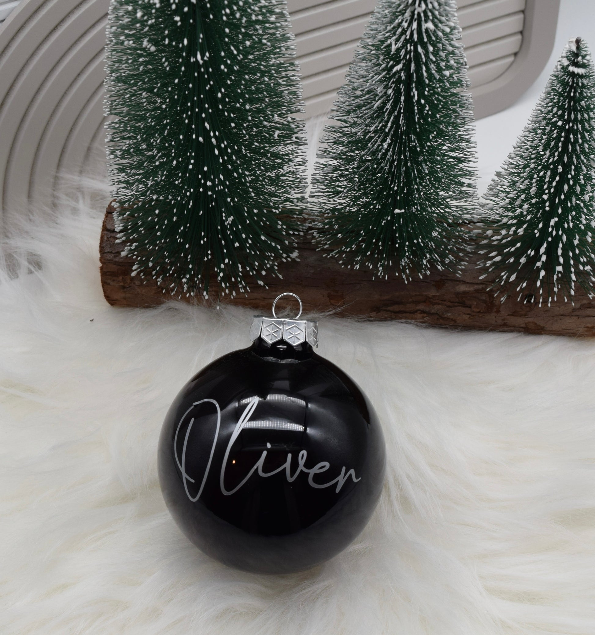 Personalisierte schwarz glänzende Weihnachtskugel mit Namen – Glas, 8 cm