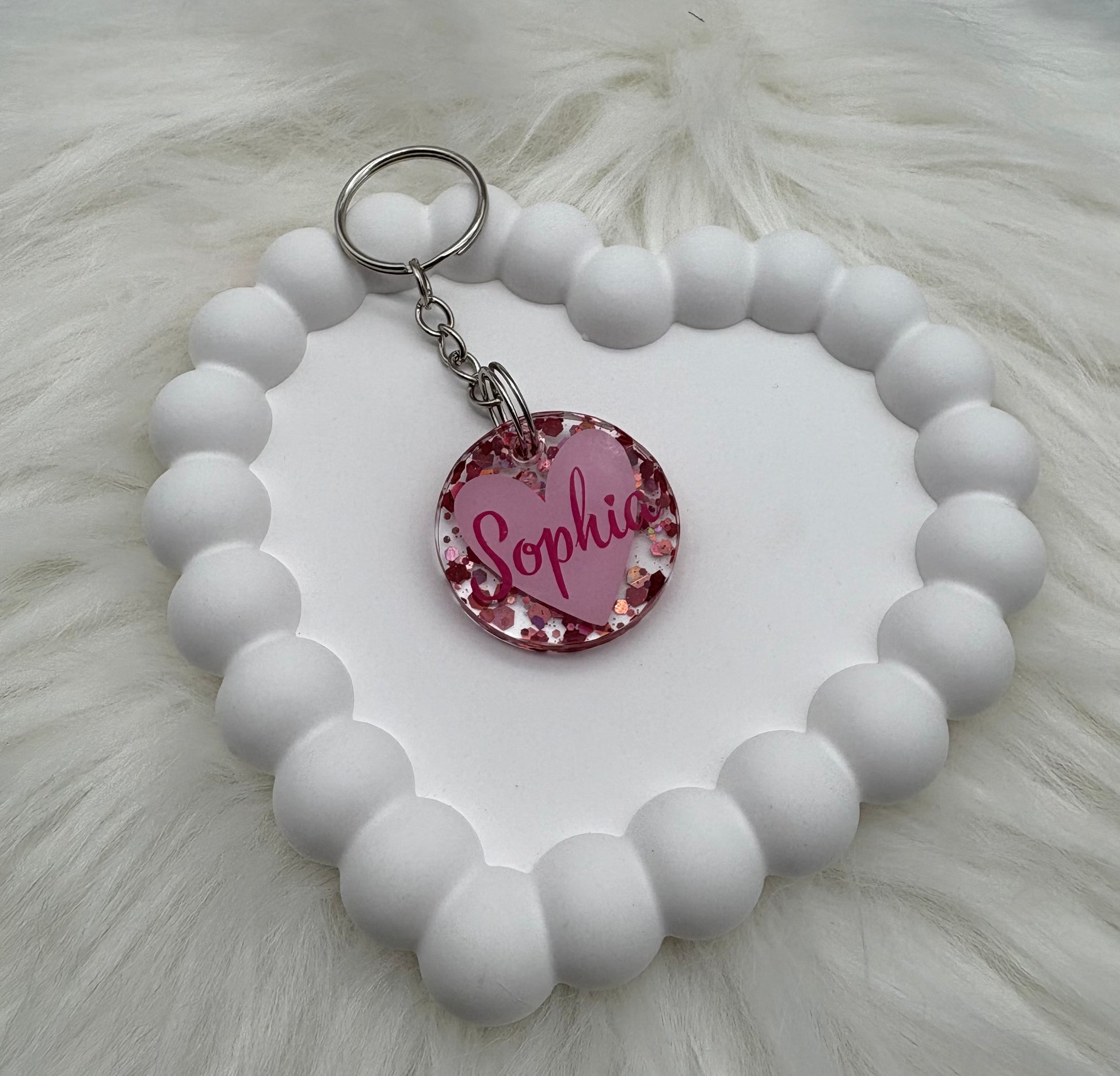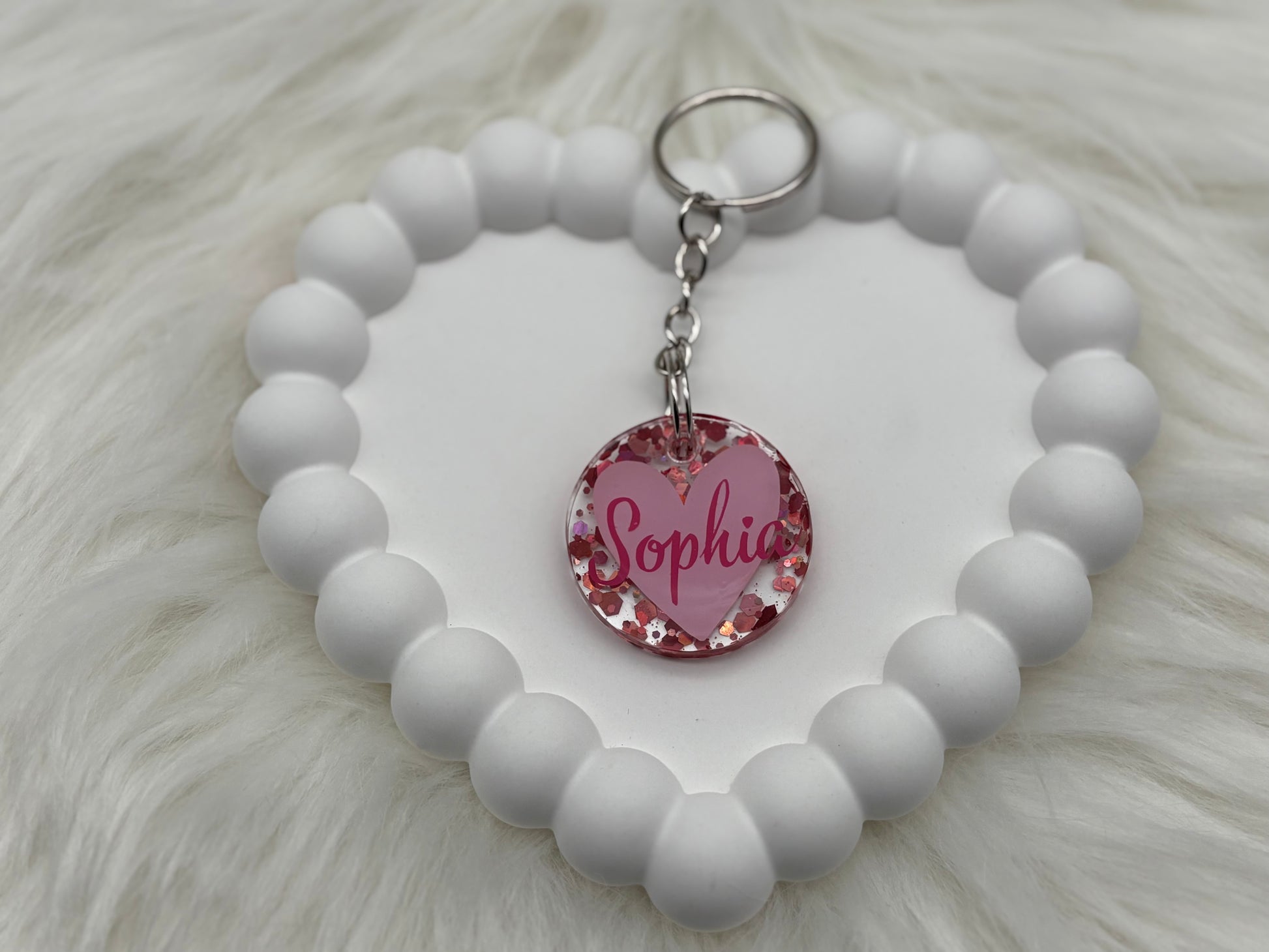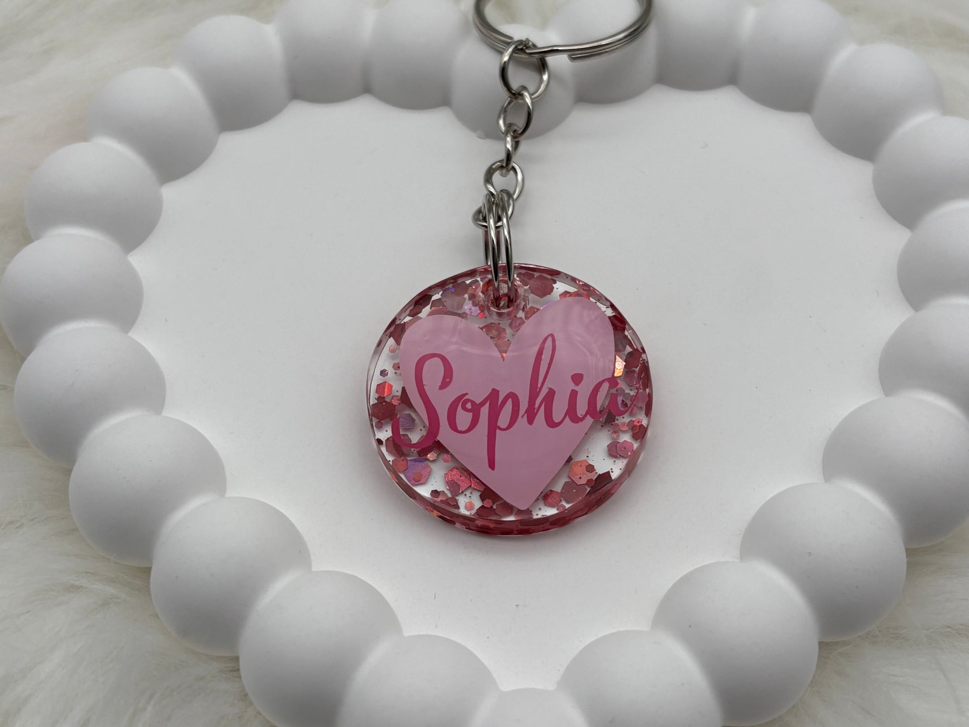 Personalisierter Herz-Schlüsselanhänger mit Name – Glitzer & Epoxidharz