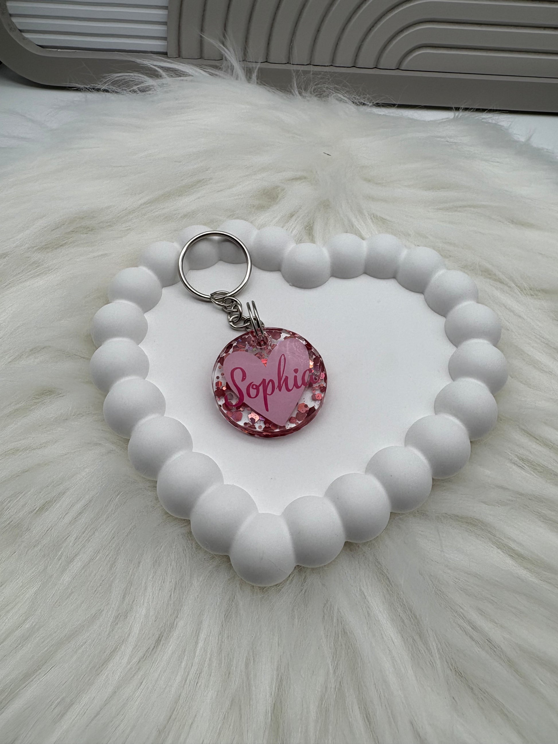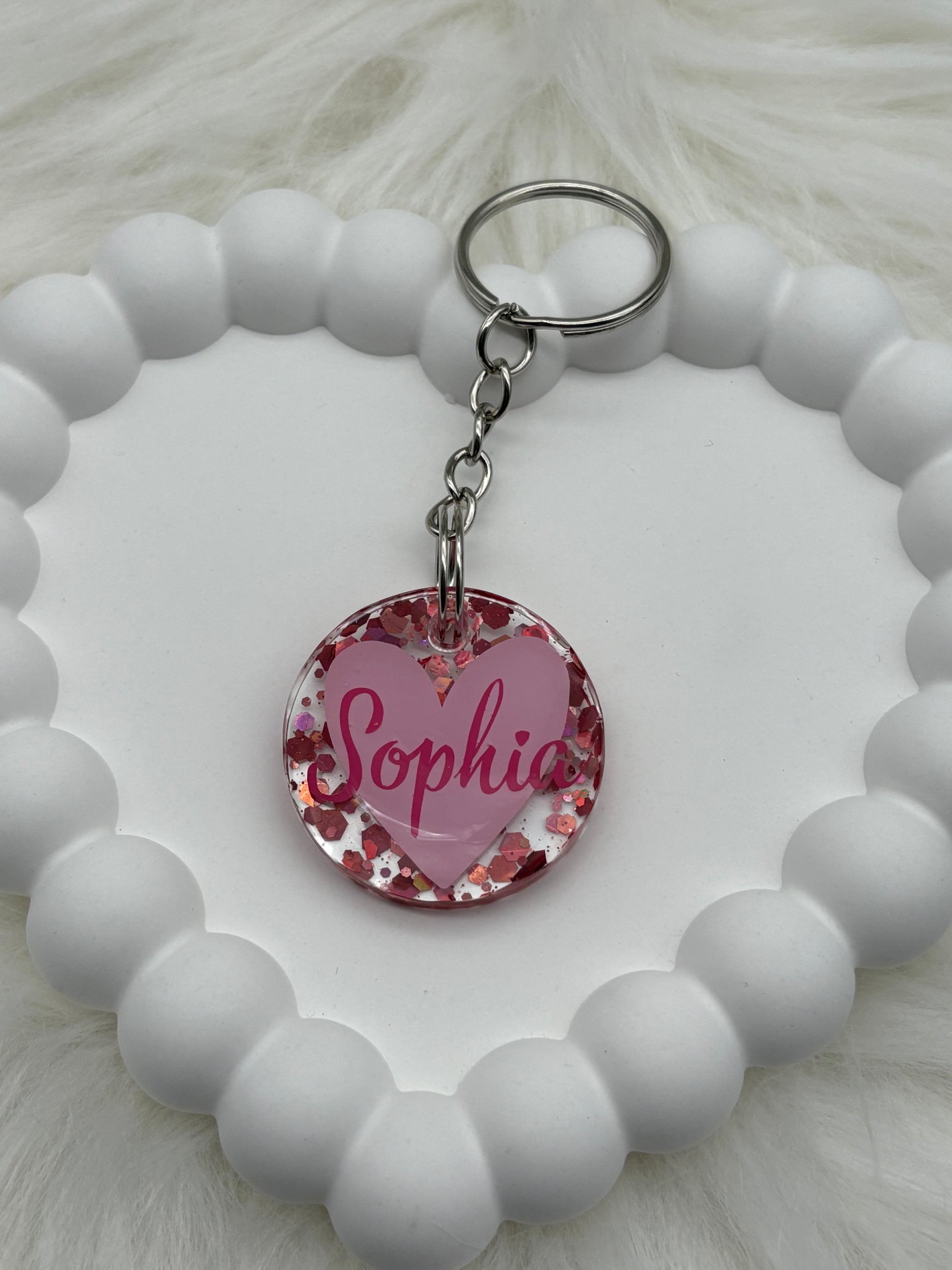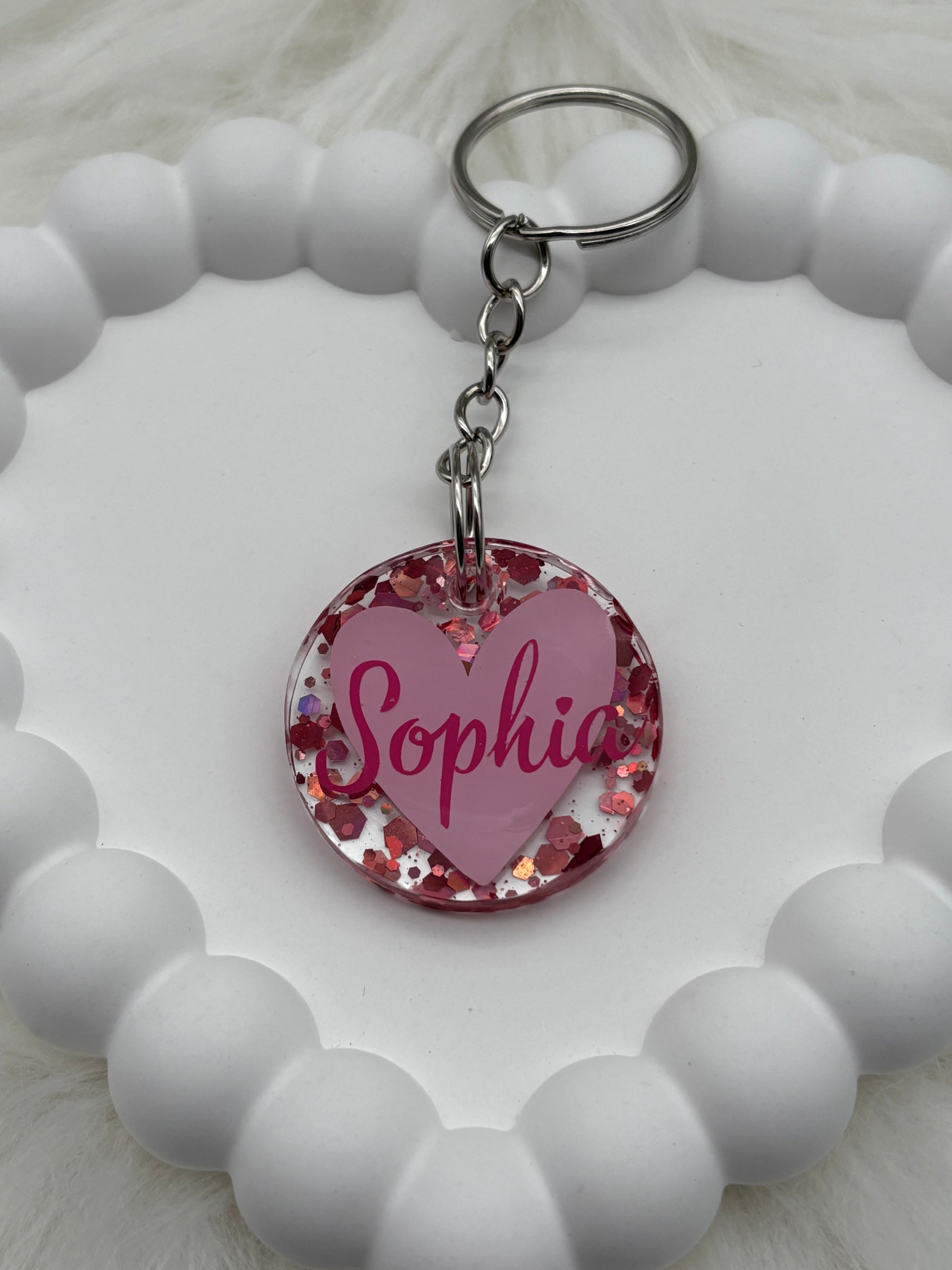 Personalisierter Herz-Schlüsselanhänger mit Name – Glitzer & Epoxidharz