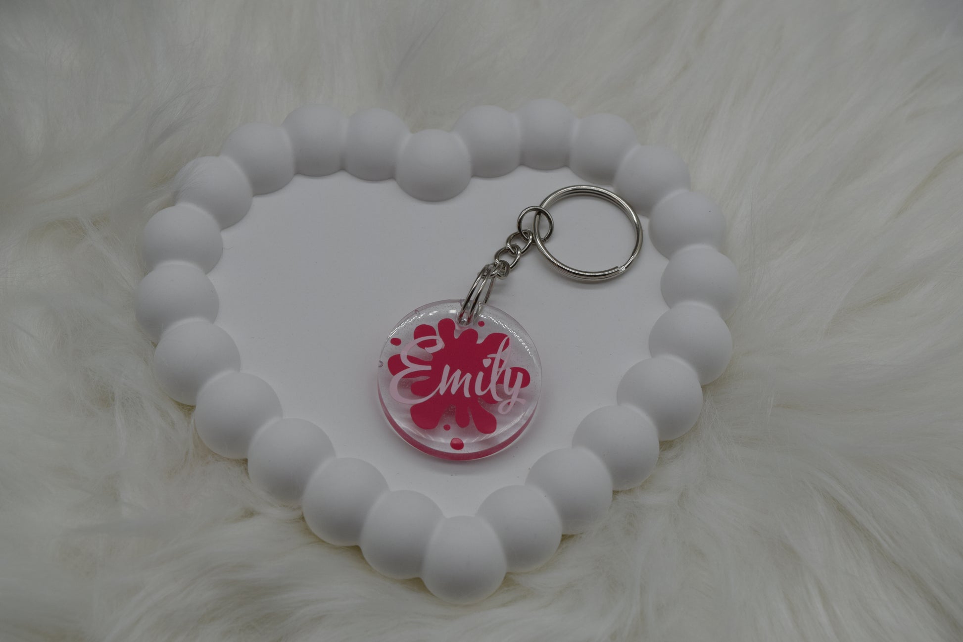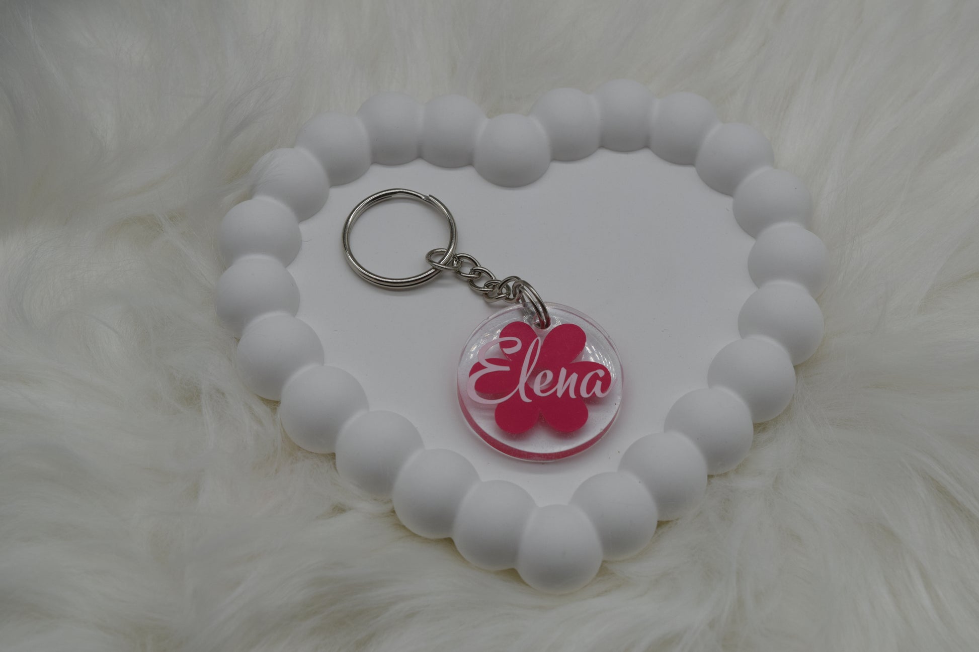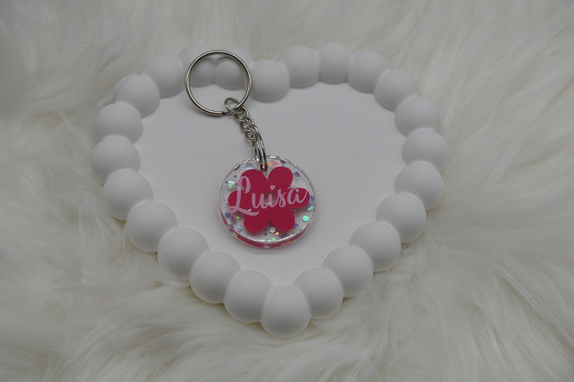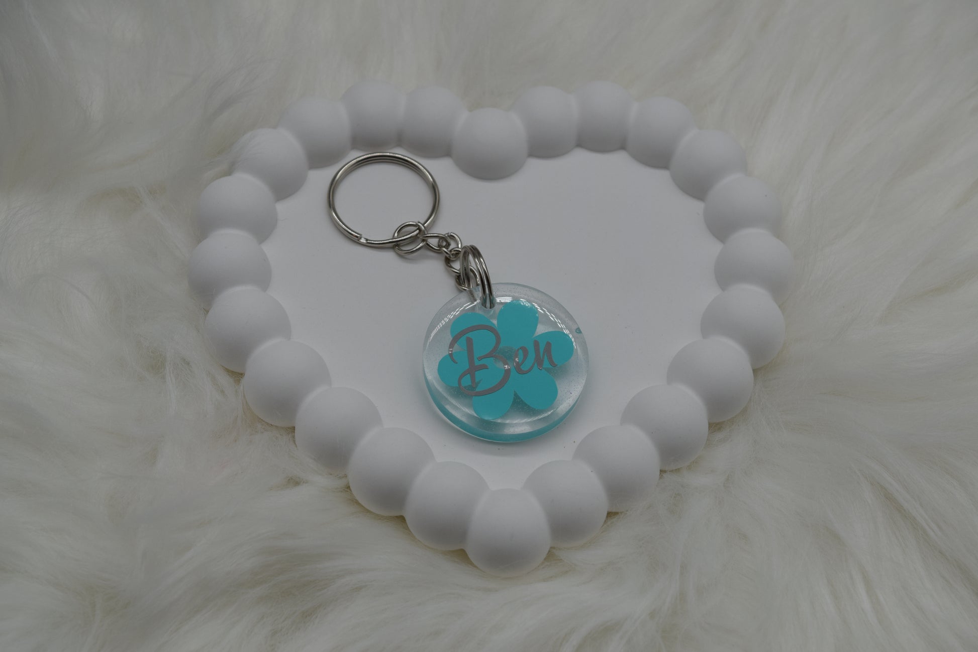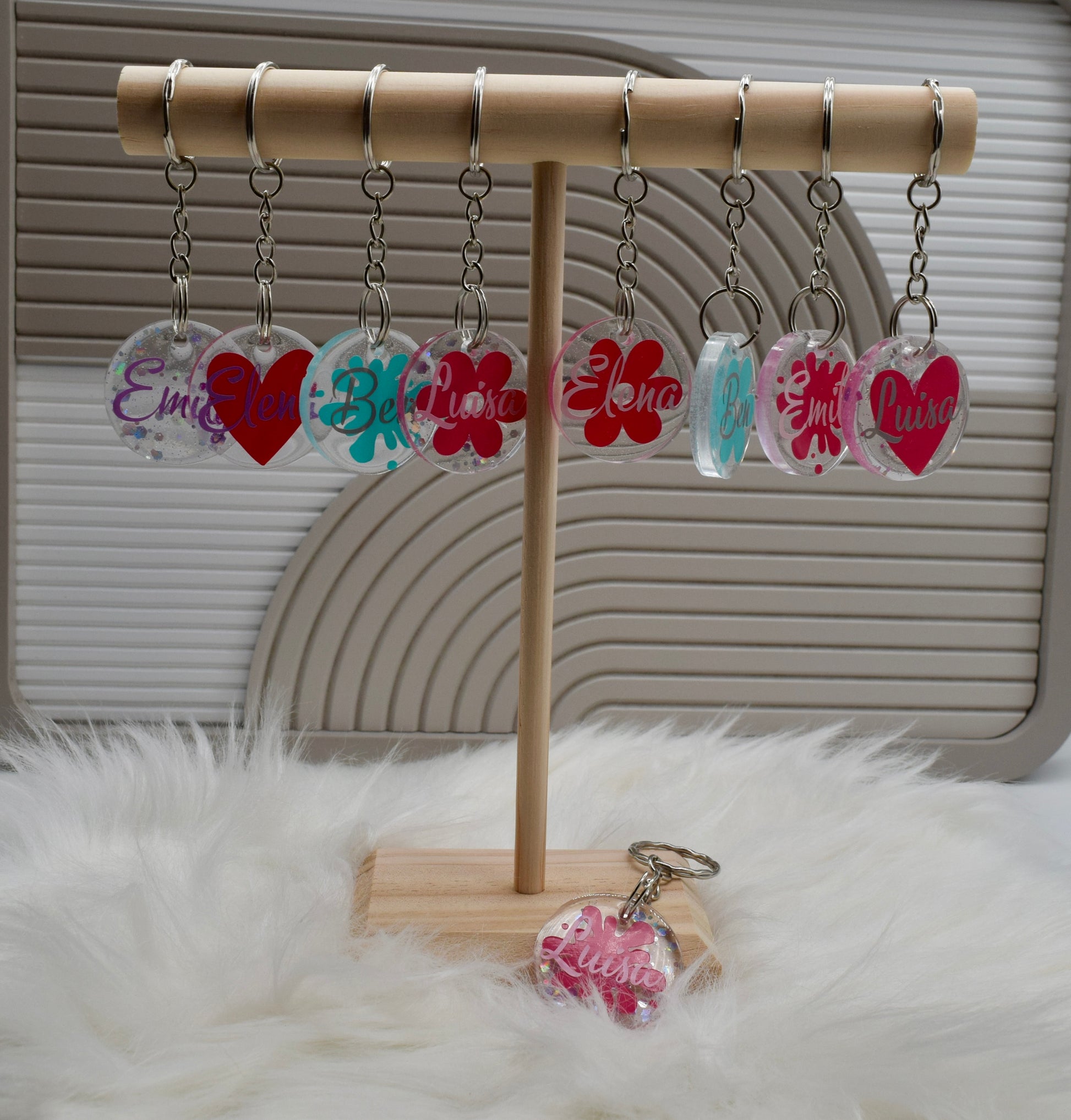 Personalisierter Schlüsselanhänger aus Resin – mit Wunschname & Design (Herz, Blume, Farbklecks)