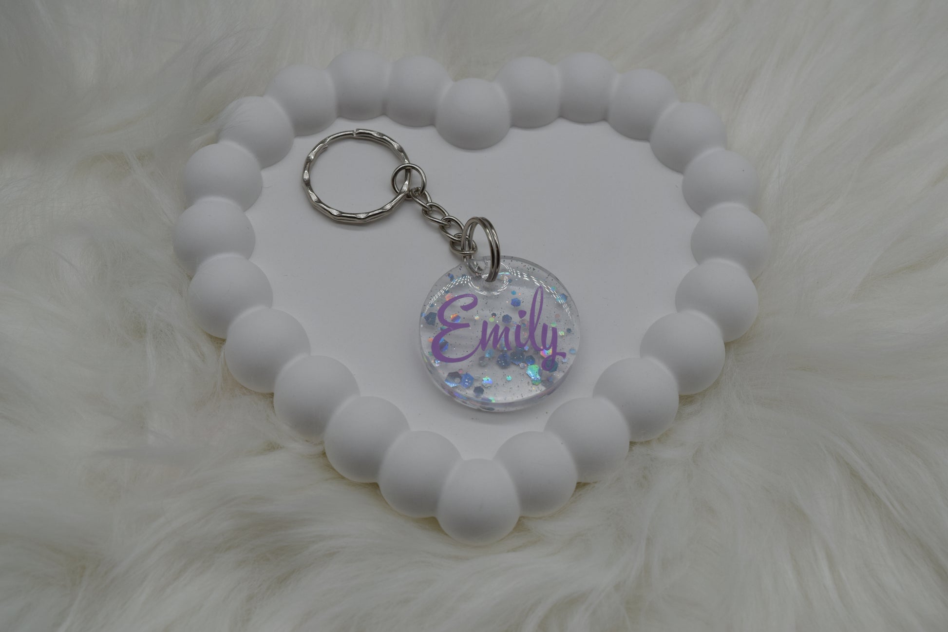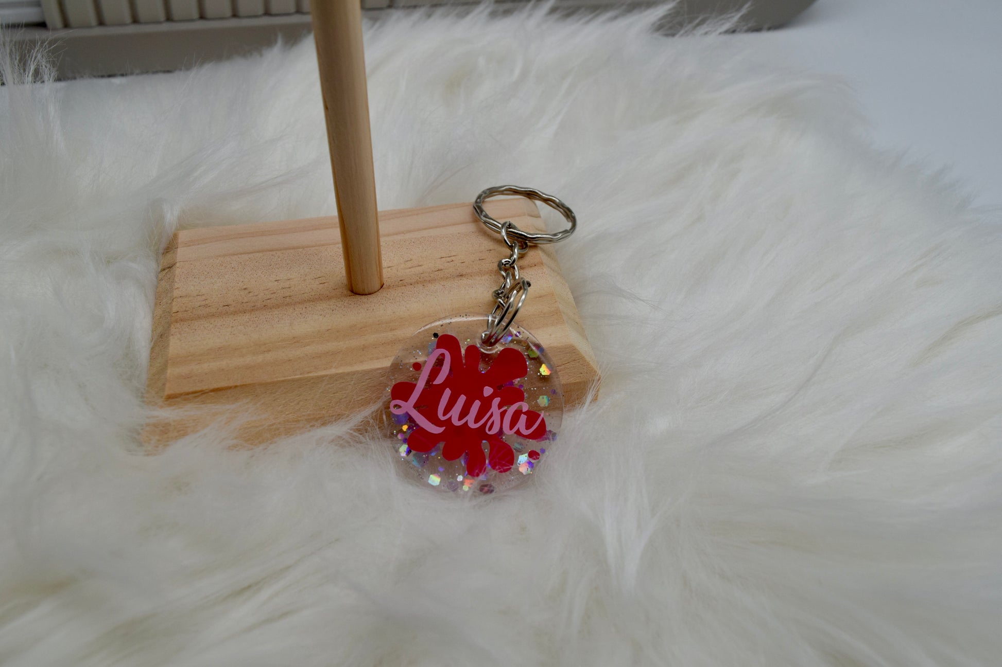 Diese handgemachten Schlüsselanhänger aus Resin sind kleine Unikate und werden mit deinem Wunschnamen personalisiert. Perfekt als Geschenk oder als individuelles Accessoire für deinen Schlüsselbund, deine Tasche oder deinen Rucksack.
