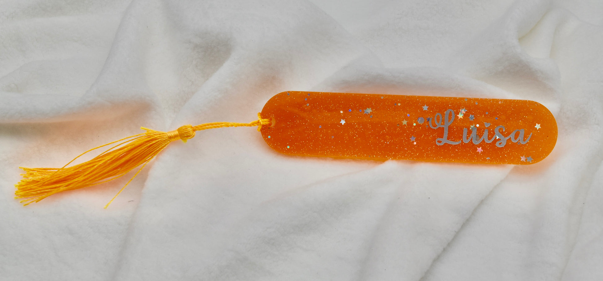 Personalisiertes Glitzer-Lesezeichen mit Namen – Handgemacht mit Liebe
