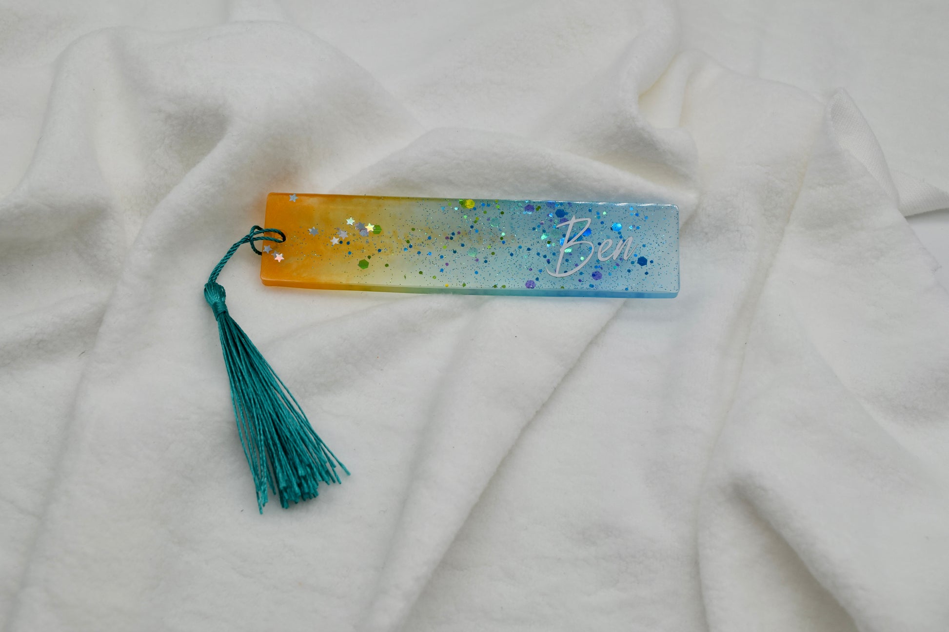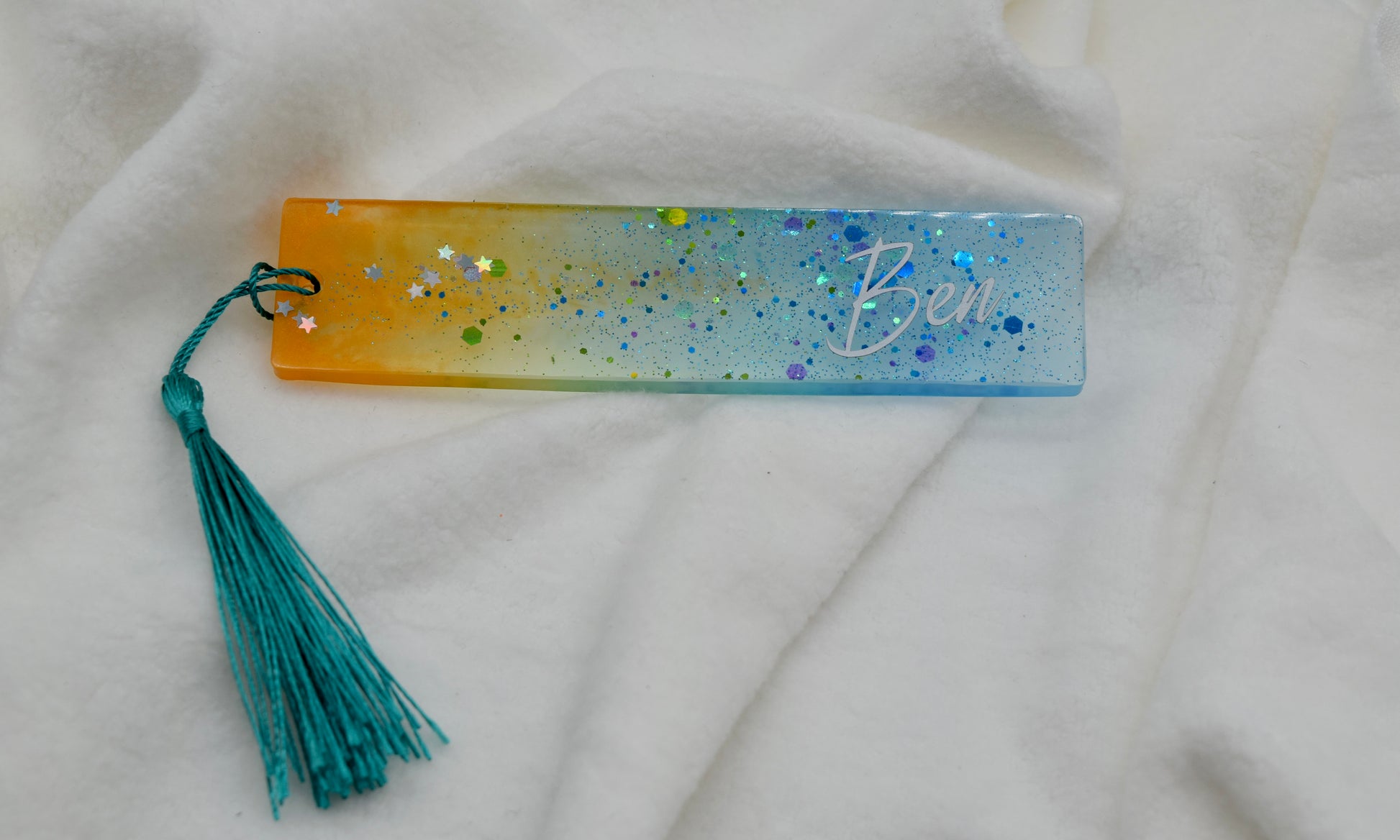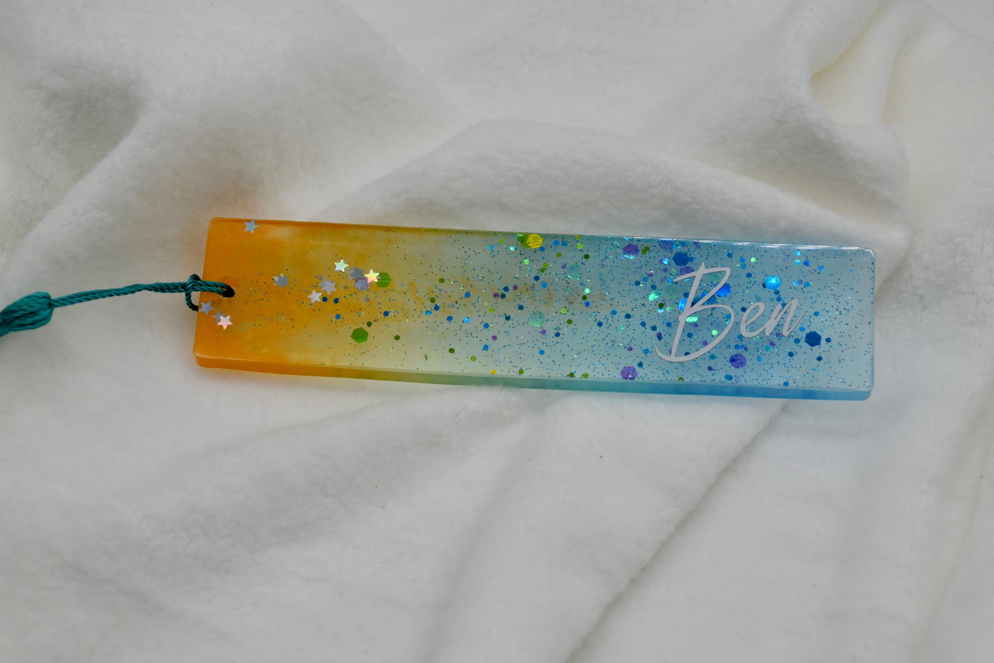 Personalisiertes Glitzer-Lesezeichen mit Namen – Handgemacht mit Liebe