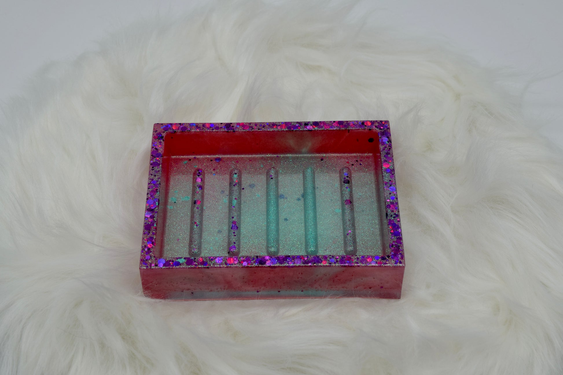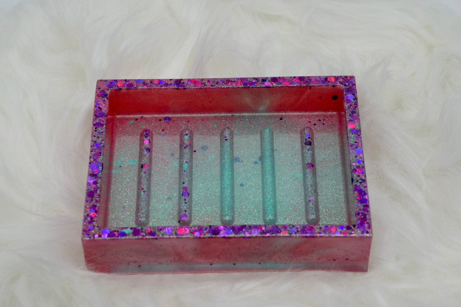 Seifenschale aus Epoxidharz – handgemachte Seifenablage mit Glitzer in Rosa & Türkis