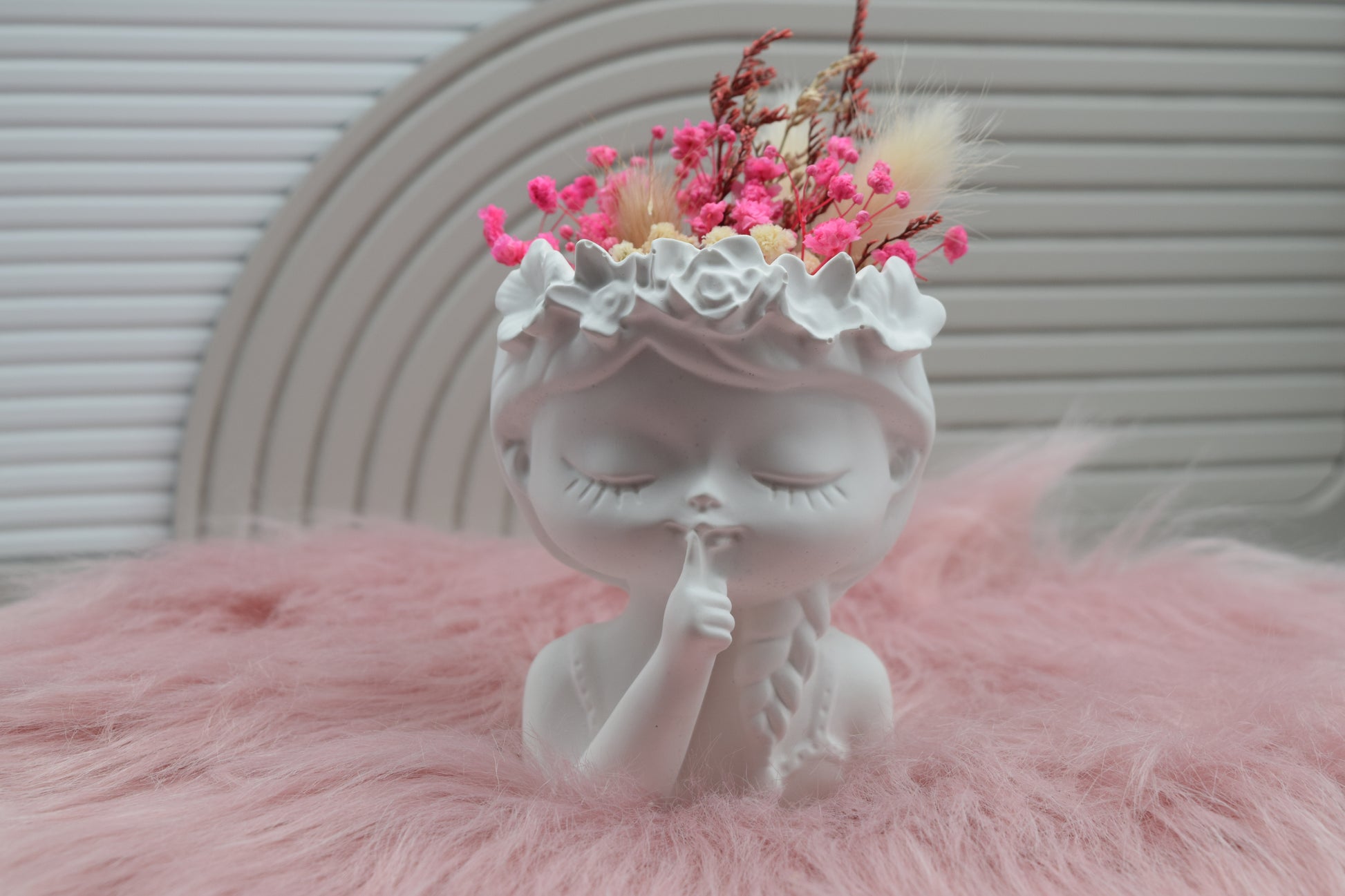 Vase „Pssst-Mädchen“ mit Trockenblumen – romantische Deko Figur & Geschenkidee